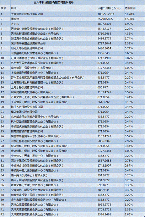 从股权比例上来看,天津奇信志成科技有限公司认缴了三六零科技10.36亿元注册资本,占总股本的51.78%。周鸿祎个人出资2.58亿元,占比12.9%。天津欣新盛股权投资合伙企业(有限合伙)出资8710.95万元,占比4.36%。